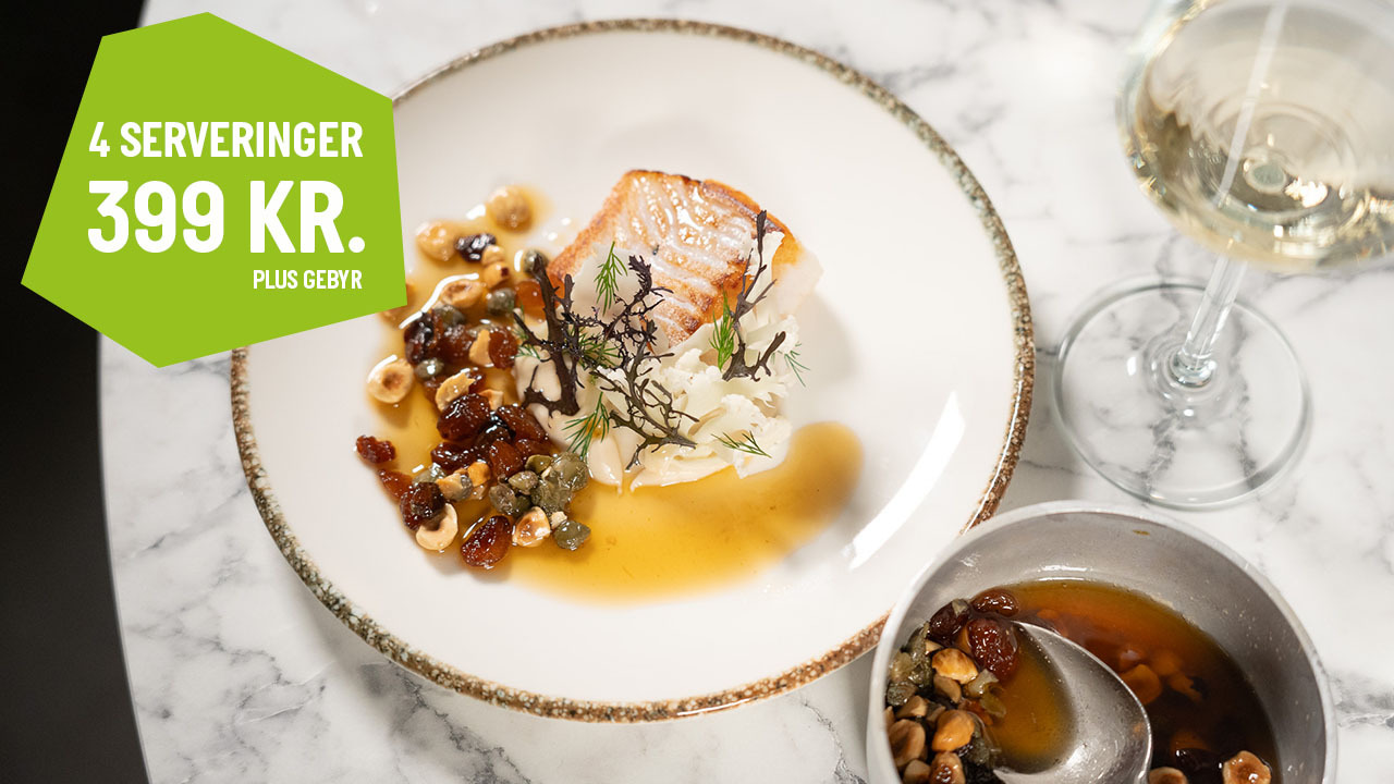 En lækker menuMenuen byder på en række delikate retter, der starter med tre forskellige snacks. Herefter serveres helleflynder med blåmuslinger, smør og urter, efterfulgt af en helstegt kalvemørbrad med kartoffel, bordelaisesauce og sauté på spinat. Aftenen afsluttes med en bærtærte, bærsorbet og lemon curd.