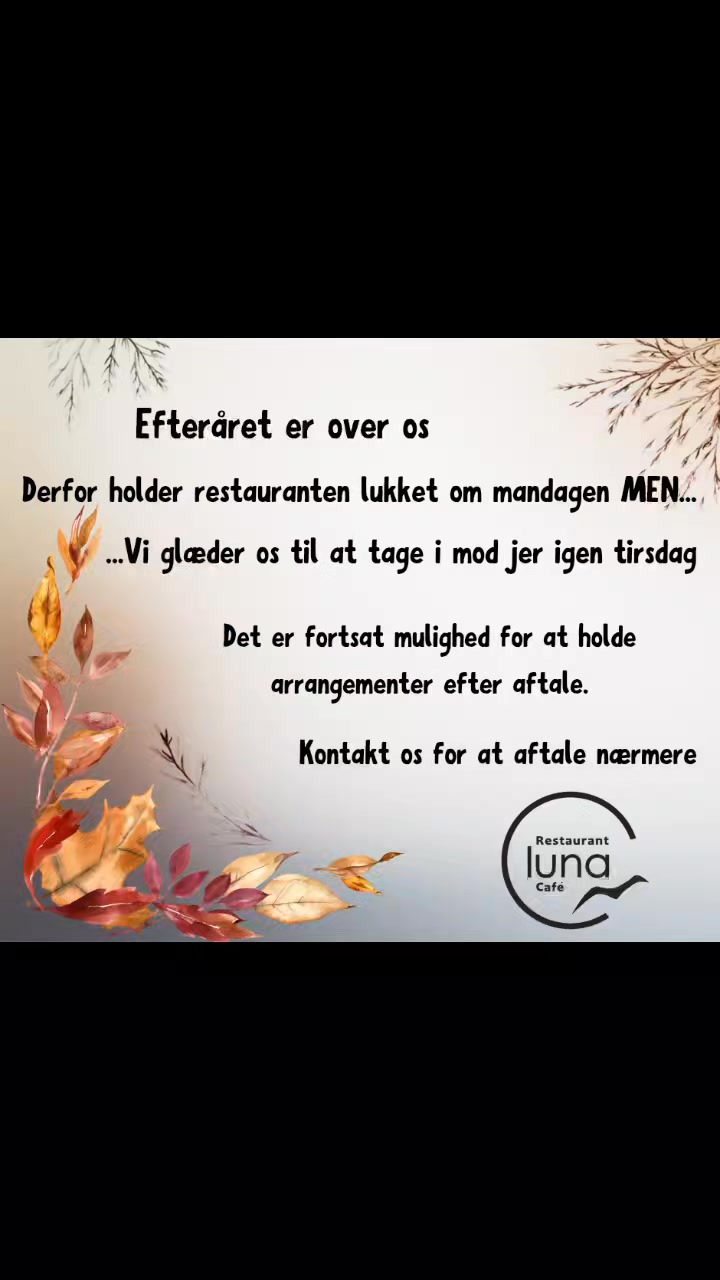 Restaurant Luna Lemvig er kommerciel partner med VORES Lemvig og oplysningerne er hentet fra deres Facebookside. Støt lokalt og giv en tommel op på deres side.