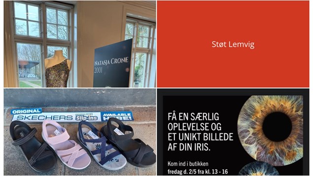 Frost Optik i Lemvig inviterer til Open by Night, hvor du kan få taget gratis billeder af din iris mellem kl. 13 og 16. Kjeld Sko præsenterer nye modeller og farver af Skechers hands free slipins sandaler. Gimsinghoved holder åbent og byder på hjemmelavede lækkerier i caféen. For mere information kan du læse de oprindelige opslag.