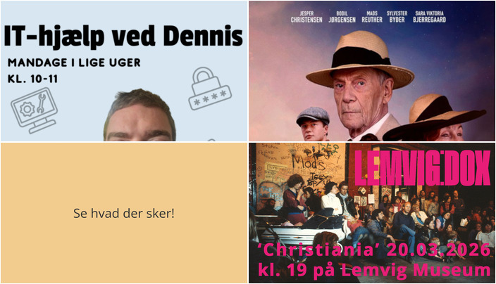 Fra mandag d. 16. marts til fredag d. 20. marts er der masser af aktiviteter at deltage i, uanset om du er interesseret i teknologi, film eller historie. Nedenfor kan du læse mere detaljeret om nogle af de spændende arrangementer, der finder sted i Lemvig den kommende uge.